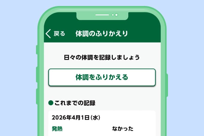 体の変化をチェックお昼休みに1分入力するだけで、自分の体調の変化に気づきやすくなり、仕事のパフォーマンス維持にも役立ちます。